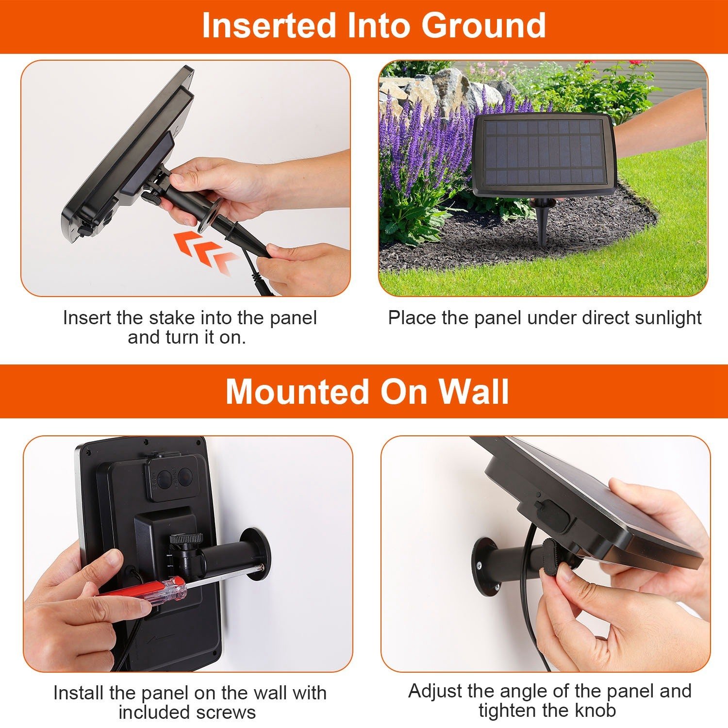 *Solar Power & 4 Light Modes*:A full charge requires 8 hours of direct sunlight,and suffices for 6-10 hours. Besides,additional USB port design allows you to charge it via USB charging on rainy or foggy days. You can easily switch 4 light modes via pressing mode switch at the back of the solar panel. Steady on,slow flashing,fast flashing,and pulsating,choose one to suit various occasions and themes.