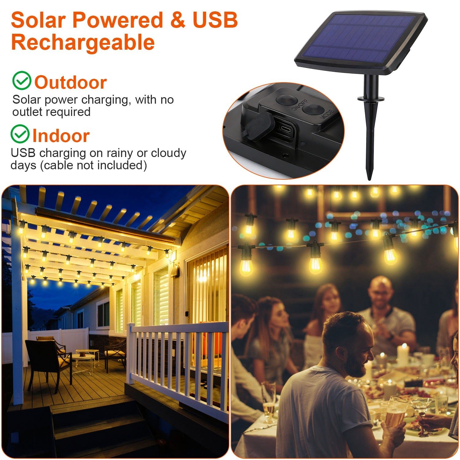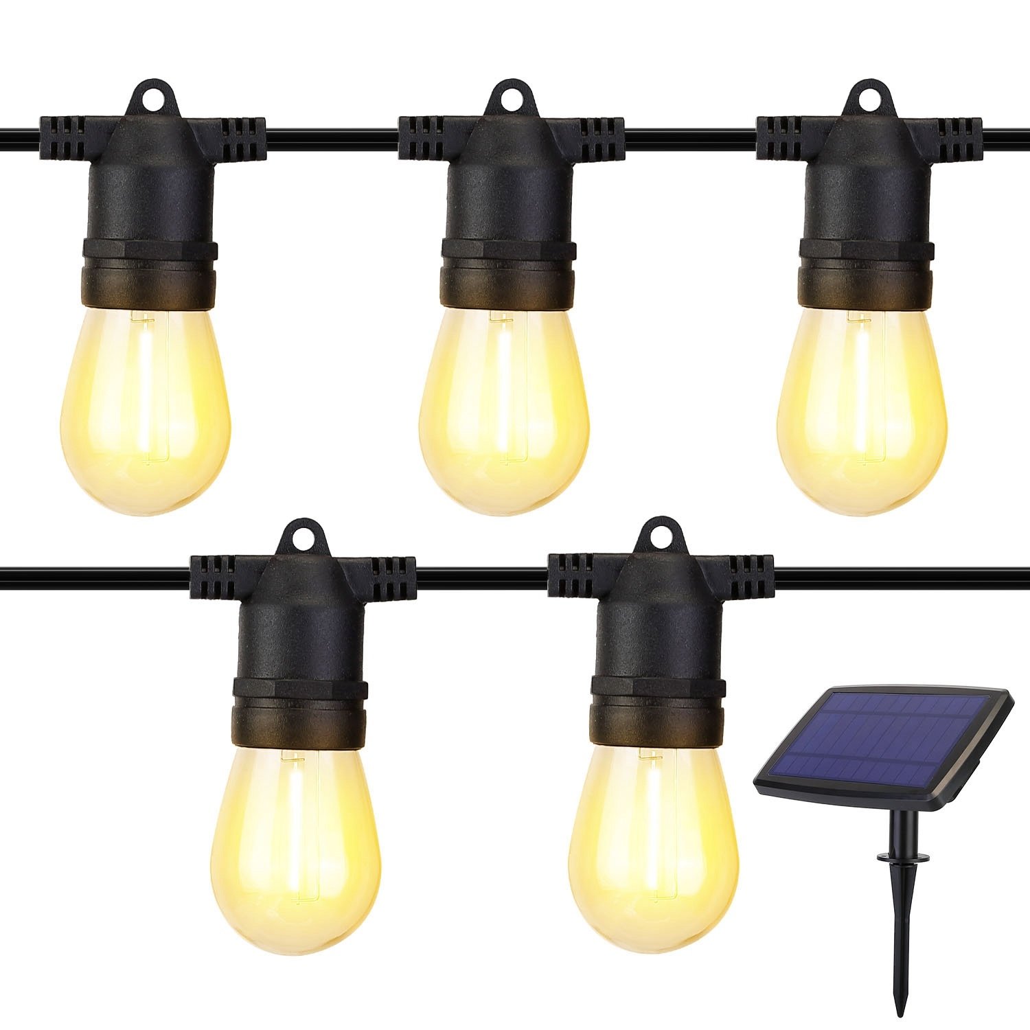 48FT Solar String Light Hanging 15 Vintage Edison Bulbs for Patio Party Yard