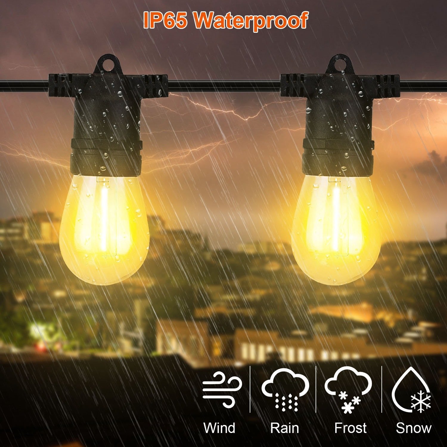 *Elegant Vintage Ambience*:The bulbs takes the appearance of Edison’s invention,whose oval-like shape and ambient glow give plain outdoor space a vintage look. 2700K warm white lights are bright enough for barbecue in spacious yard and wedding,cozy,inviting,and romantic.
